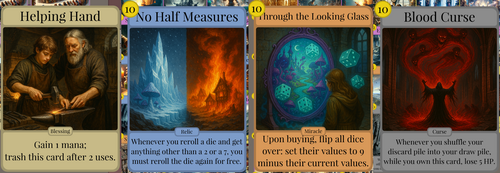 - Added several new cards to the shop deck: No Half Measure, Through the Looking Glass, Blood Curse.